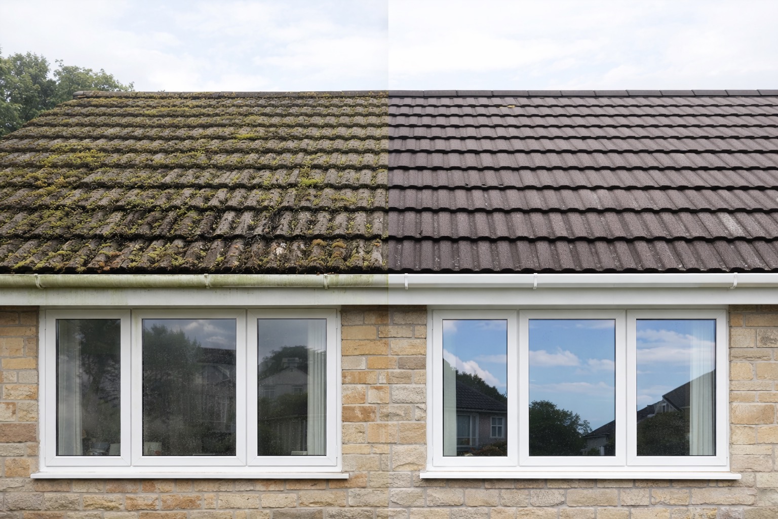Moss is carefully removed by hand using delicate roof scraping methods, designed to protect tiles while clearing built-up growth. This gentle approach helps prevent damage, improves water runoff, and leaves your roof looking tidy and well maintained.